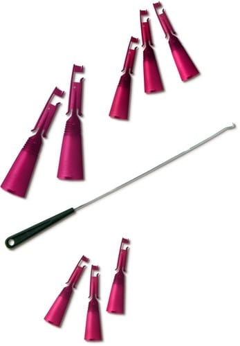 Zestaw 2 lub 3 korków firmy Browning do zbrojenia topów wraz z drabinką do ustawiania naprężenia amortyzatora gumowego. Zestaw zawiera również klucz z plastikową rączką do wyciągania korków z wędziska. Zestaw ten jest bardzo łatwy w montażu, a zawartość 2 lub 3 korków umożliwia uzbrojenie większej ilości topów w amortyzator.