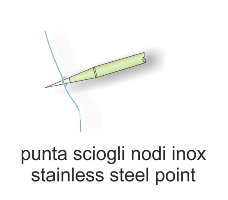 Igła o stożkowym kształcie pomaga w szybkim rozwiązywaniu węzłów, bez ryzyka uszkodzenia cienkiej żyłki.