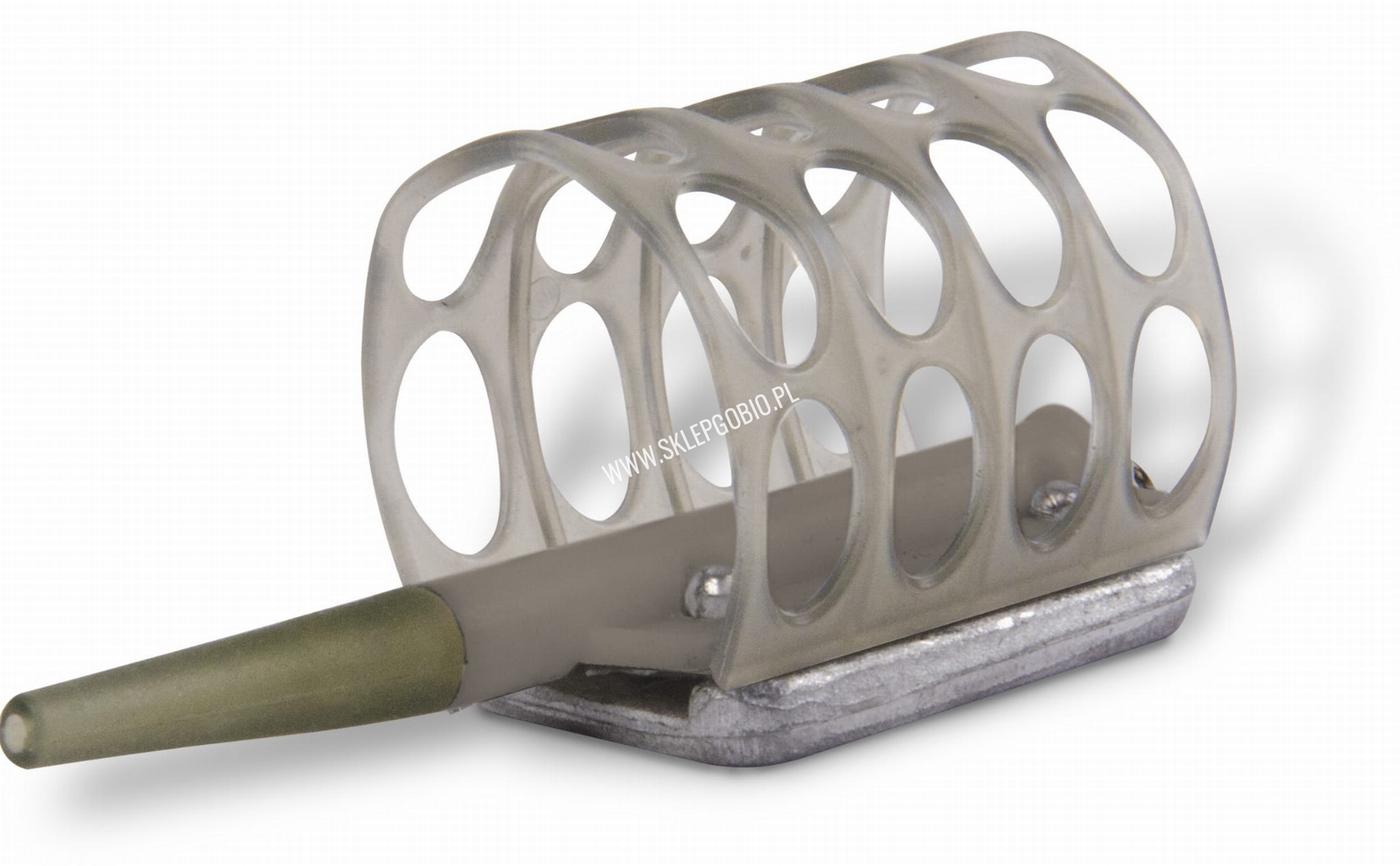 Doskonały przelotowy koszyczek plastikowy z dużymi otworami z wewnętrznym ożebrowaniem, które doskonale utrzymuje zanętę i zapobiega jej szybkiemu wypłukiwaniu.