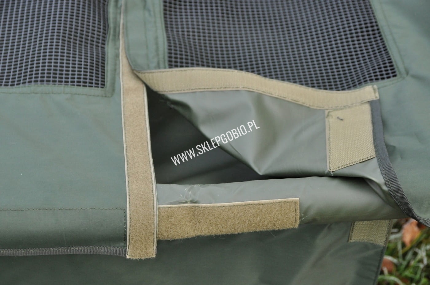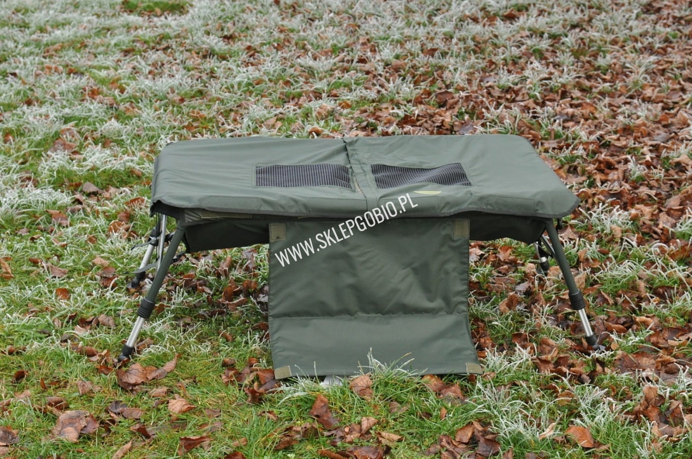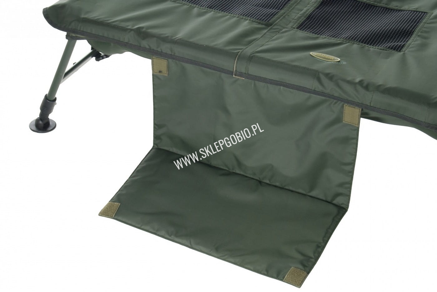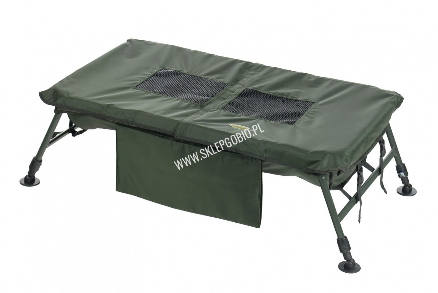 Bezkompromisowe rozwiązanie w trosce o karpie. Ta przestronna kołyska z ramą z rurek i czterema teleskopowymi nogami zapewnia pełne bezpieczeństwo, dla wyholowanej ryby, w każdym terenie. Pomysłowa dwuczęściowa pokrywa pozwala z jednej strony na całkowite zamknięcie kołyski, a z drugiej na dolewanie wody poprzez gumową siatkę. Woda może odpływać przez dwa otwory zabezpieczone siatką, po jednym na każdym boku. Dla wygody wędkarza po boku znajduje się mata do klęczenia. Niewątpliwą zaletą tej kołyski jest jej niewielki rozmiar po złożeniu.