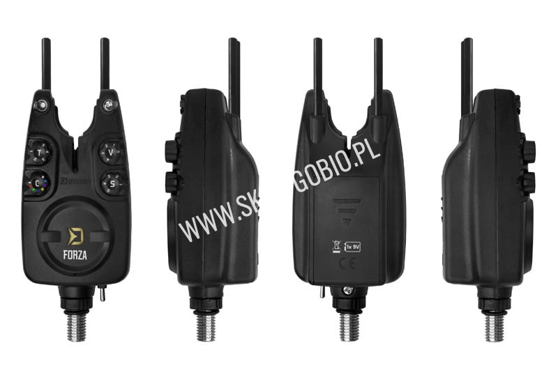 Delphin FORZA to zestaw sygnalizatorów brań zapewniających niezawodną sygnalizację świetlną, dźwiękową lub wibracyjną w każdych warunkach. Korpus sygnalizatorów i centralki wykonany jest z czarnego solidnego tworzywa ABS, co gwarantuje odporność na uszkodzenia mechaniczne. Absolutna odporność na wodę to również aspekt, który przyczynia się do jego długowieczności. Każde urządzenie sygnalizacyjne można przełączać w tryb dzienny lub nocny za pomocą dźwigni. W trybie nocnym zaświeci się dioda LED pozycji sygnalizatora, dzięki czemu zawsze będziesz mieć podgląd pozycji wędki. Sygnalizatory mają szeroki zakres wybieranych parametrów. Sygnał dźwiękowy (przełącznik T) i czułość w zakresie 1-9 cm (przełącznik S) można wybrać z maksymalnie pięciu opcji, zgodnie z wymaganiami. W przypadku brania wstecznego zostaniesz powiadomiony innym tonem. Głośność można również regulować na pięciu różnych poziomach, przy czym poziom 0 oznacza tryb cichy. Niekwestionowanym bonusem sygnalizatorów z zestawu FORZA jest możliwość wyboru spośród 7 kolorów sygnalizacyjnej diody LED. Każdy wybiera swojego faworyta i chcąc zmienić po prostu wybierasz inny kolor przełącznikiem obrotowym „C (kolor)” i nie musisz kupować nowego sygnalizatora. Na dole znajduje się wejście dla złącza 2,5 mm. Dodatkowo każdy sygnalizator posiada gwinty do mocowania Snag gear, są one częścią zestawu.