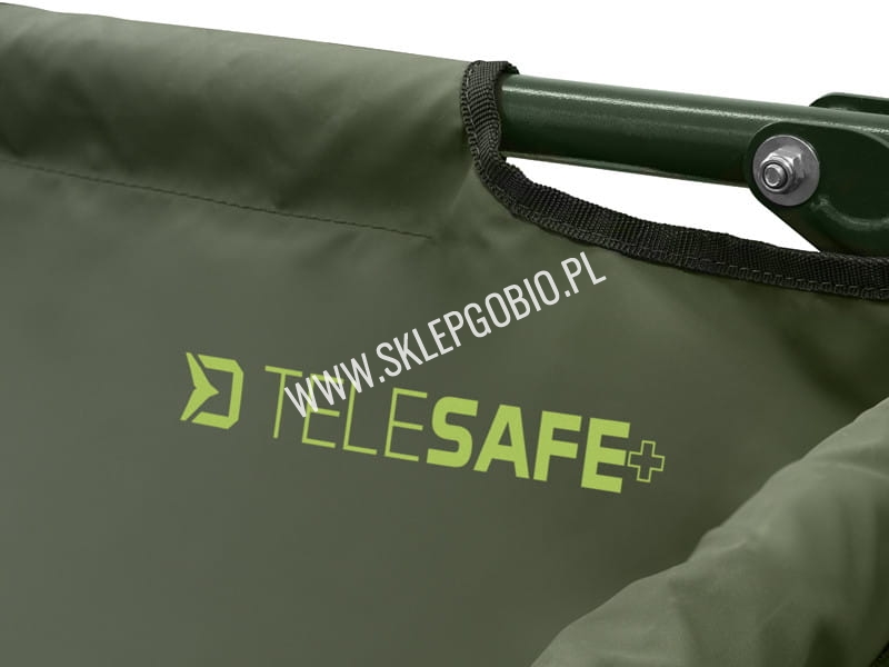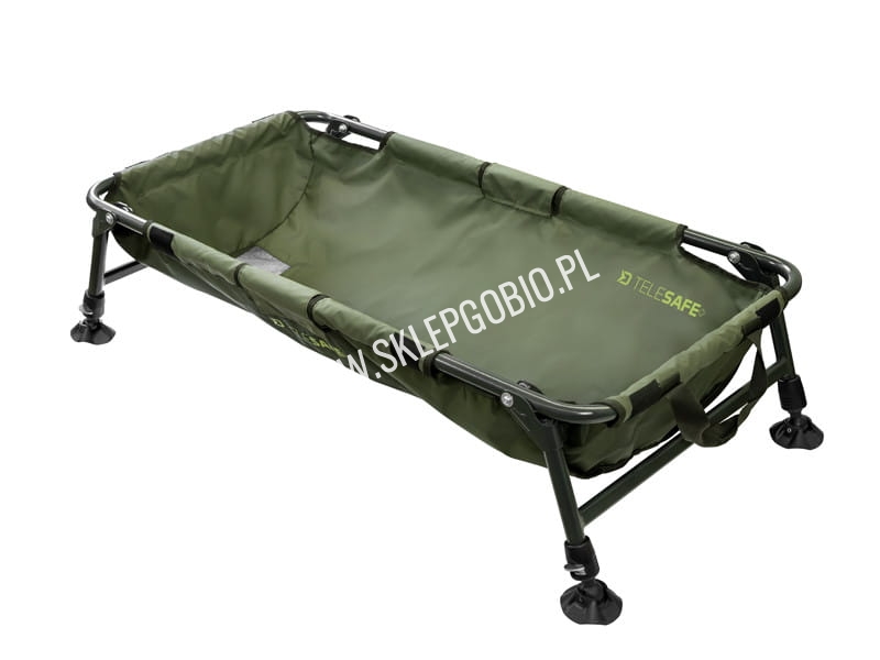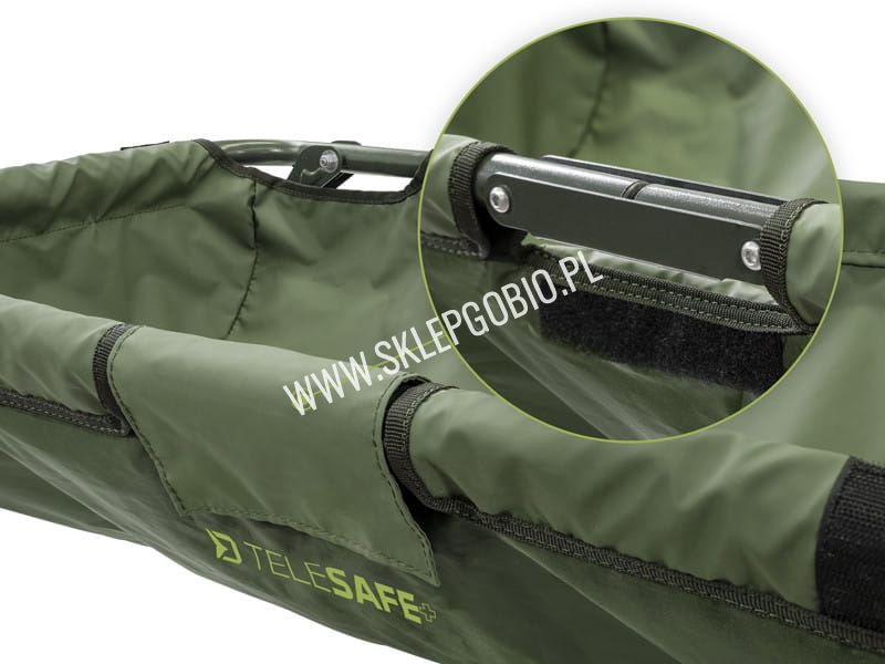 TeleSAFE+ posiada również pokrowiec mocowany na zamek błyskawiczny z rzepem. Dzięki niemu możesz bezpiecznie trzymać rybę w środku, podczas gdy Ty przygotowujesz aparat lub nabierasz wodę, aby polać rybę. Specjalne teleskopowe nóżki kołyski zabezpieczą ją przed utknięciem w błocie. Kolejną mocną stroną tego produktu jest łatwy transport. Konstrukcja jest podzielona w środku, więc bardzo łatwo jest ją złożyć na pół i przenosić.
