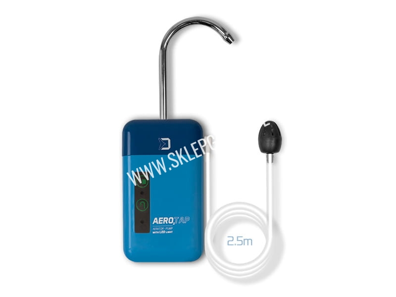 Ta wielofunkcyjna pompka tlenowa nadaje się do przechowywania żywych przynęt, ale także do mycia rąk lub naczyń. Pompując trzy litry wody na minutę, zapewnia przynęcie wystarczający komfort podczas dłuższego transportu. AeroTAP może być używana jako kran z wodą o wydajności 1 litra wody na minutę. Wbudowany czujnik ruchu sprawia, że jest bardzo łatwa w użyciu. Dodatkowo posiada hak z tyłu, który umożliwia zamocowanie jej na wiadrze lub konstrukcji namiotu. Bateria wystarcza na 8 godzin, wystarczająco na dłuższe wyprawy, gdy nie ma możliwości ładowania.
