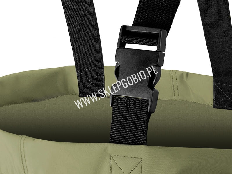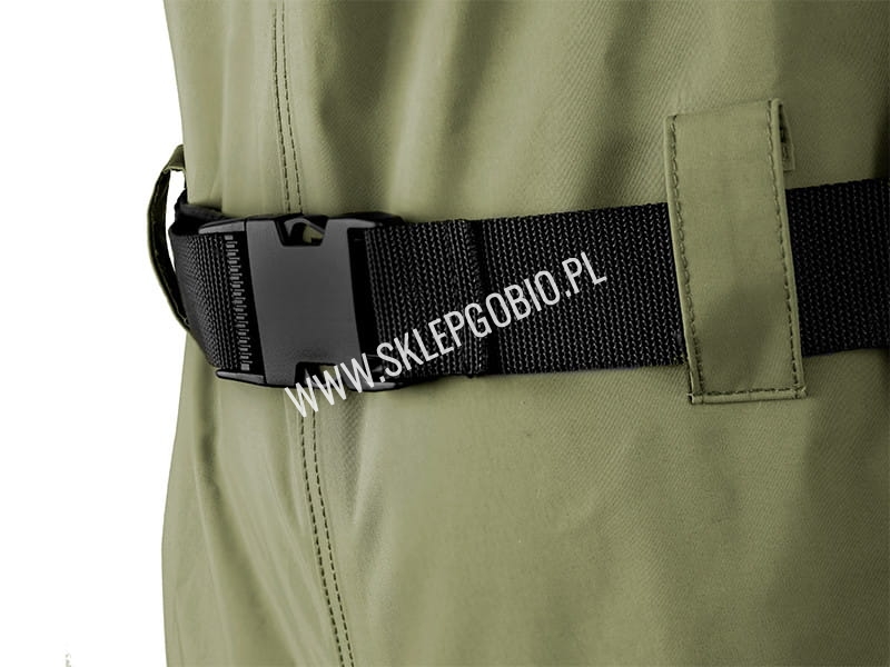Oprócz standardowo regulowanych szelek, model ten posiada również odpinany pasek, który pozwala na jeszcze lepsze dopasowanie do sylwetki wędkarza. Kolejną dużą zaletą dopinanego paska jest ograniczenie możliwości szybkiego dostania się wody do woderów w razie upadku podczas brodzenia w wodzie.