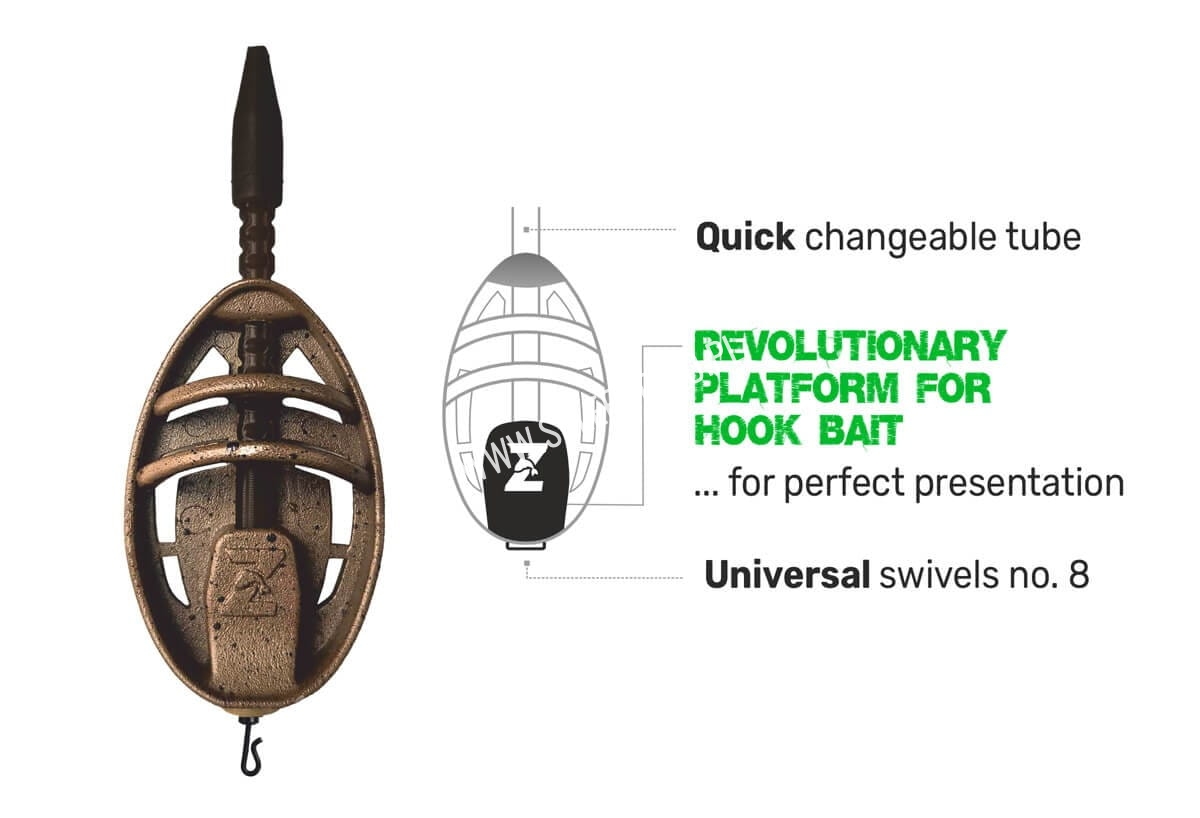 ZFISH Method Feeder ZFX to najwyższej klasy, wyrafinowane koszyczki do metody „NOWEJ GENERACJI” z serii premium „3Fish”. W opracowaniu tych wyrafinowanych podajników brał udział zespół naszych specjalistów, które są naprawdę przemyślane w najdrobniejszych szczegółach. Koszyczki są idealnej wielkości i doskonale wyważone, dzięki czemu dobrze rzucają i zawsze lądują na dnie po prawej stronie. Rewolucyjną nowością w tych koszyczkach jest specjalny mostek/powierzchnia do umieszczenia przynęty z haczykiem, co gwarantuje, że Twoja przynęta zawsze będzie dokładnie tam, gdzie powinna. Dużą zaletą podajnika jest możliwość łatwej i szybkiej zmiany obciążenia. Umożliwia to wyjmowana rurka oraz przekrój znajdujący się z tyłu podajnika. Po wyciągnięciu rurki z korpusu koszyczka wystarczy zdjąć żyłkę i wymienić ciężarek na inny. Taka zmienność da Ci możliwość dostosowania się do różnych warunków podczas łowienia, bez konieczności żmudnego ponownego wiązania końcowego montażu. podajniki wykonane są w kolorze zgaszonego brązu w czarne kropki, dzięki czemu łatwo wtapiają się w dno i nie przeszkadzają rybom w żerowaniu. Oczywiście w zestawie znajduje się również uniwersalny krętlik QC w rozmiarze 8, ułatwiający wymianę przyponu końcowego.