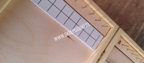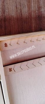 Na wysokości pręcików są otwory do wbicia dodatkowych znaczników, pomagających w odmierzaniu równej długości przyponów. W zestawie są 4 dodatkowe znaczniki przytwierdzone magnesem do bocznej ścianki pudełka.